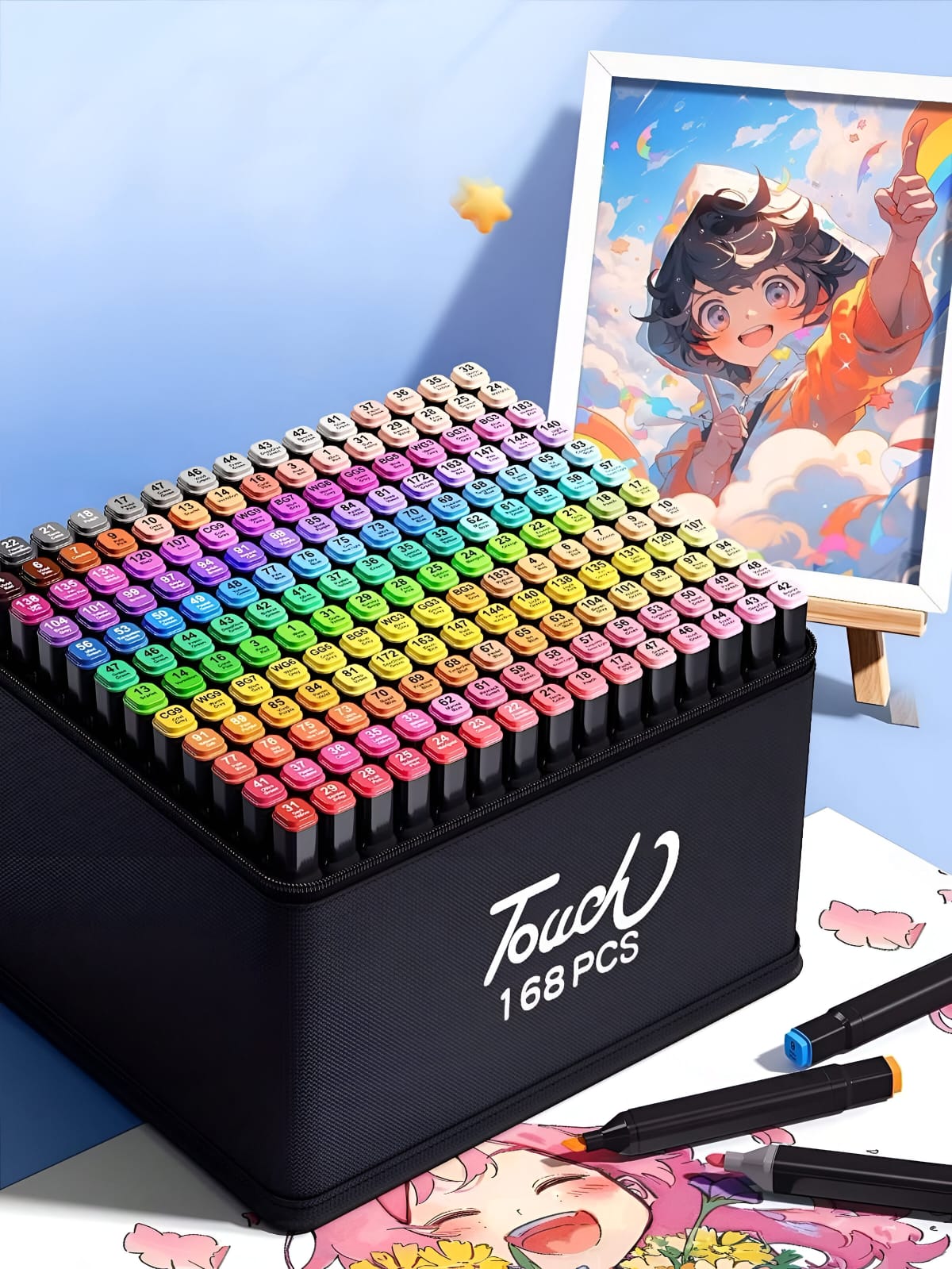 168pcs Marker Pen Set, Student Special Watercolor Brush Pen, Art Student Special Dual-Headed Oil-Based Marker